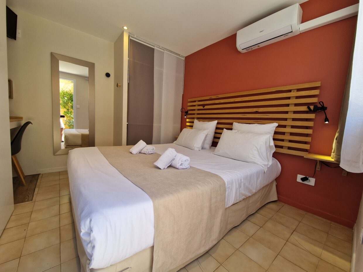 Suite de 18m² 2 pièces avec accès indépendant par notre petit patio. Séparées par la salle de bain - pièce 1: lit queen size 160x200 pièce 2 : lit 90x200 Suite équipée de : clim - dressing - coffre - bureau - tv - wifi salle de bain - baignoire - sèche cheveux - petit frigo